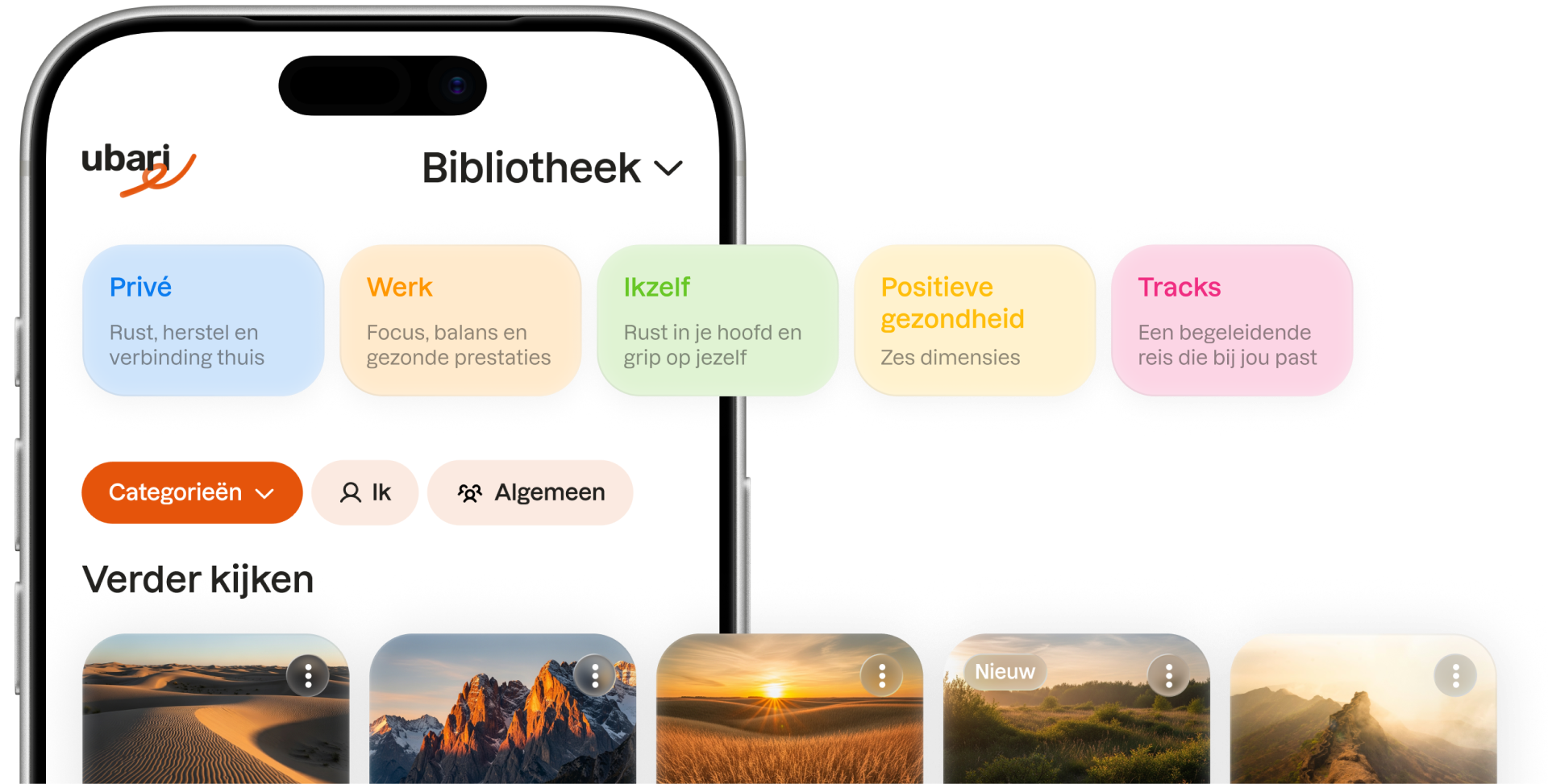 Ubari combineert persoonlijke digitale begeleiding met praktische tips, oefeningen en inzichten die medewerkers helpen om stress te verminderen en veerkracht & vitaliteit te versterken.
