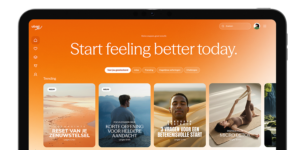 Op basis van onboarding en interactie biedt Ubari relevante content en oefeningen die passen bij iemands situatie en ritme.