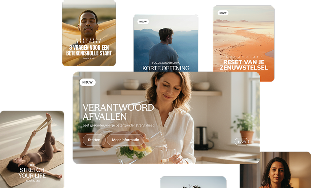 Korte oefeningen, reflecties en praktische content helpen om stress los te laten en nieuwe gewoontes op te bouwen die blijven hangen.